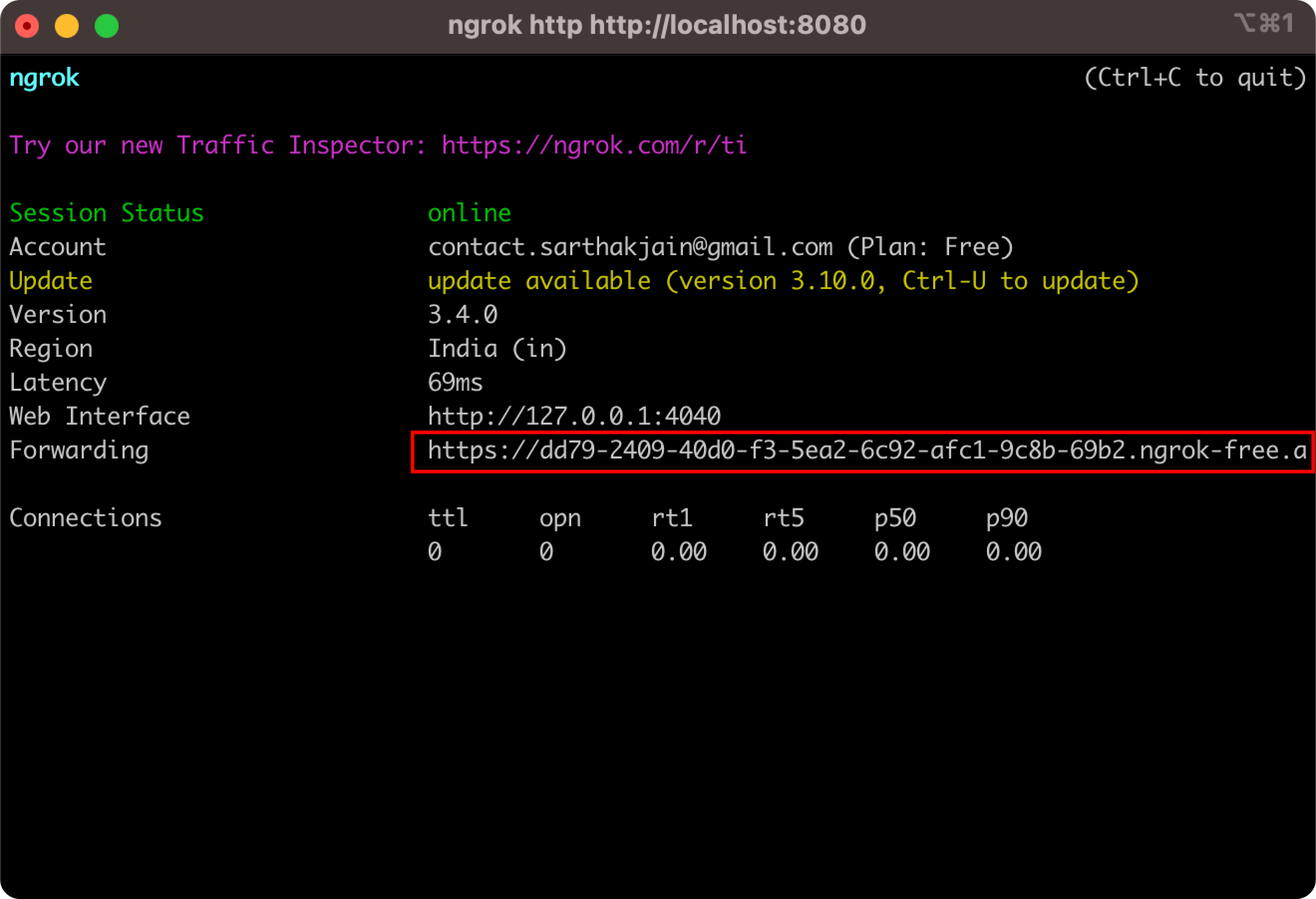 - Run the following command in your terminal to expose your local server to the internet: